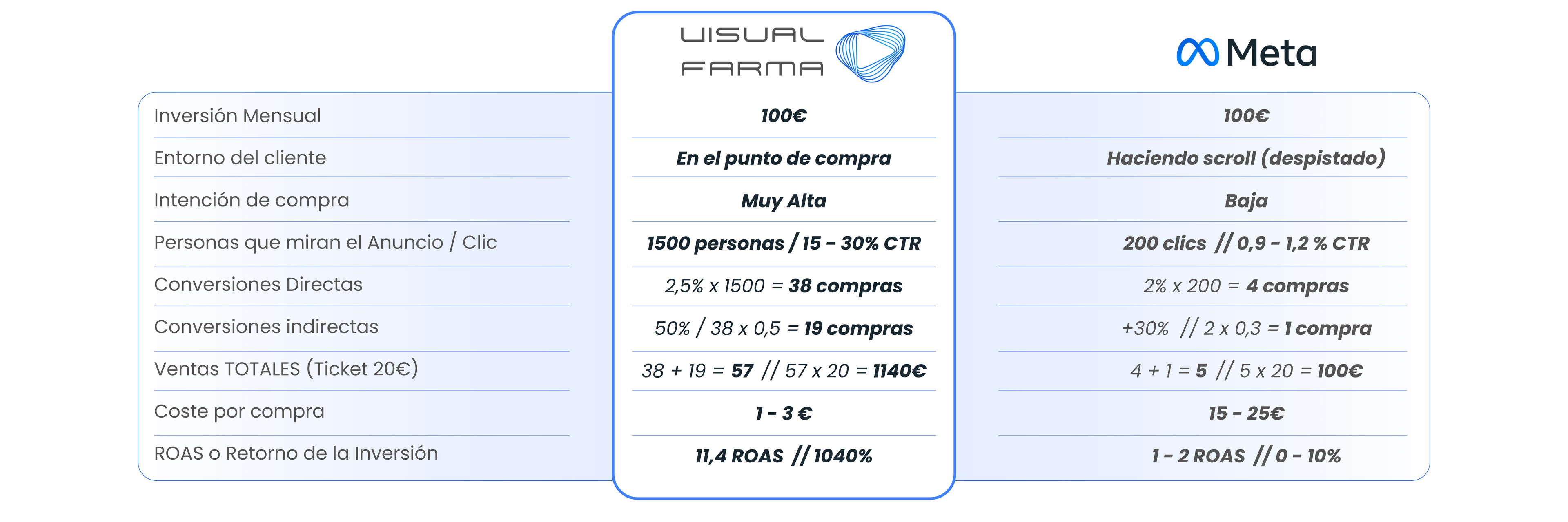 Con la misma inversión mensual de 100€, VISUAL FARMA puede generar entre 8€ / 11€ por cada € invertido.